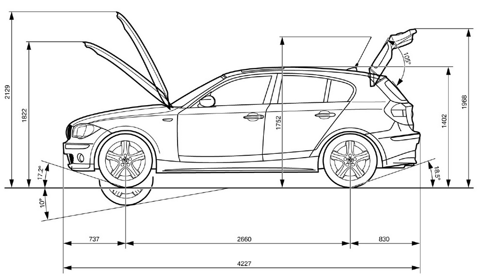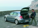 BMW 1-й серии отличается не только особыми ходовыми качествами, но и просторным и функциональным салоном, а также многочисленными практичными деталями оснащения. Четыре двери и широко открывающаяся задняя крышка (высота подъема 1,80 метра) облегчают доступ к сиденьям и загрузку багажника. Асимметрично разделенное и складывающееся заднее сиденье обеспечивает большую гибкость 1-й серии. Одну из транспортных функций выполняет чехол для лыж* в средней части спинки. Чехол для лыж можно демонтировать и заменить, например, на отсек с подстаканниками*. Разделительная сетка багажника* препятствует смещению багажа в пассажирский салон при экстренном торможении.