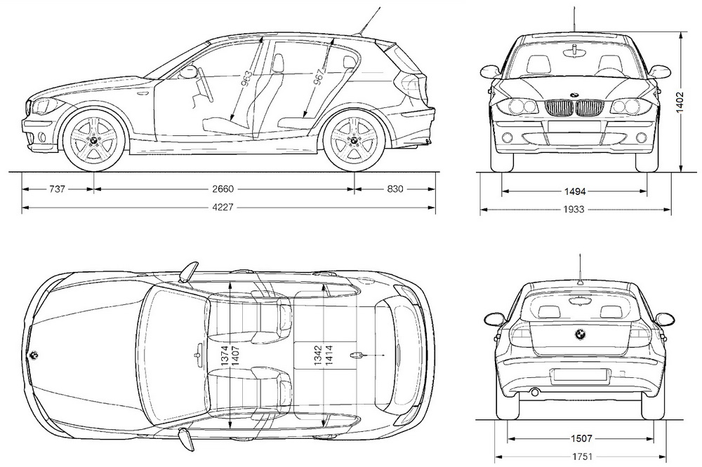 Концепция привода и ходовой части типична для BMW, и ранее не применялась в компактном классе. Кузов автомобиля - пятидверный хэтчбек с ярко выраженным спортивным характером, который, имея четыре двери, большую заднюю дверь, предлагает практичный во многих отношениях салон. BMW 1-й серии отвечает всем требованиям, предъявляемым к функциональности автомобиля его класса. Однако эти практические достоинства составляют лишь часть его характера. Динамические свойства BMW 1-й серии не оставляют сомнений: это BMW до мозга костей.
